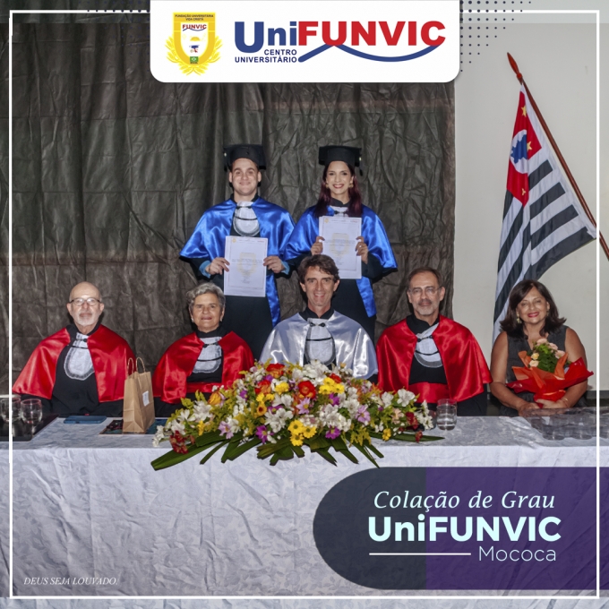 Estiveram presentes os acadêmicos Professor Me. Manoel Cássio de Souza Filho, Coordenador do UniFUNVIC Polo EAD de Mococa e coordenador do Curso de Administração, Professor Especialista Marcelo Torres Freitas, Paraninfo do Curso de Administração, Professora Me. Rosani Cristina Rigamonti, Paraninfa do Curso de Pedagogia, Professor Me. Marcelo Aparecido Pedrosa de Resende, Patrono dos formandos 2025 e a Professora Maria Rita Souza Contreras, Diretora da Escola FUNVIC de Mococa.