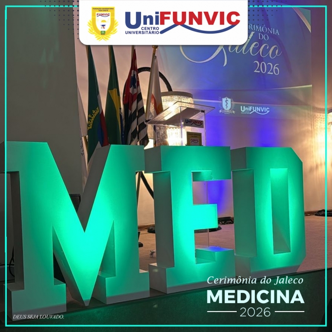 O Centro Universitário FUNVIC - UniFUNVIC realizou a emocionante Cerimônia do Jaleco da turma 2026 do curso de Medicina, reunindo alunos, familiares, padrinhos e autoridades acadêmicas em uma noite marcada por simbolismo, emoção e celebração.